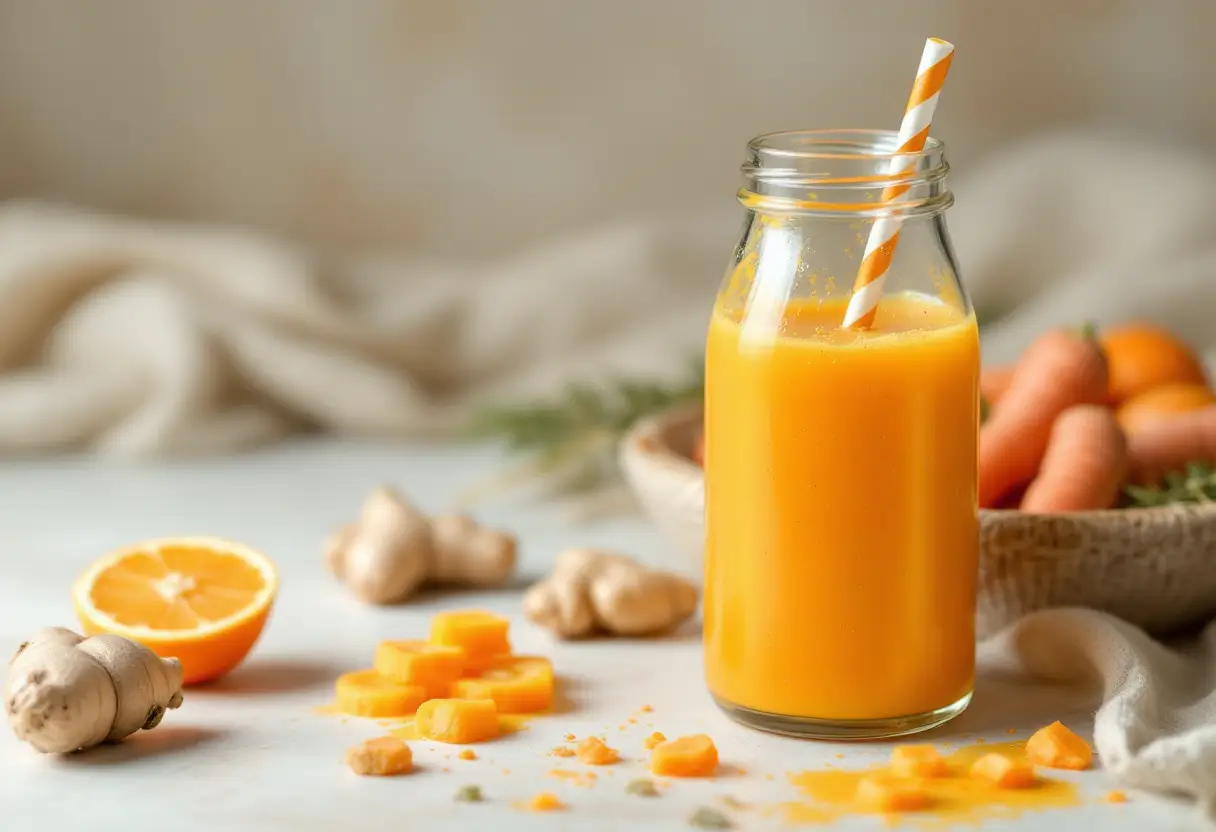 Carrot, turmeric, ginger, orange, and a touch of black pepper. Anti-inflammatory properties meet immune-boosting vitamin C.